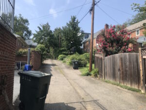 When I was in the Forest Hills neighborhood of DC on Monday, I glanced down an alley and was amazed at how un-alleylike it looked—more like a country lane than the DC alleys I am familiar with.