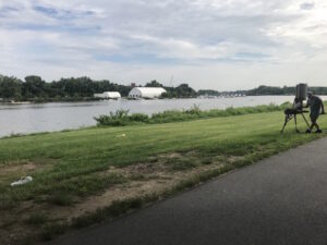We also had a great walk in Anacostia Park, a place I have been meaning to visit forever. It’s a long 5-mile sliver of green space stretched along the east bank of the Anacostia with a multi-use trail where we met every manner of walker, jogger, cyclist. Even a painter and a photographer were out on the banks of the river trying to capture the shifting shimmies of light and various grays.  We parked right behind a huge roller skating rink that, appropriately, was playing Aretha Franklin’s RESPECT on a repeating loop.