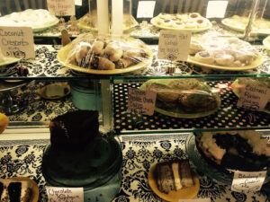Sweet memories, indeed, of chocolate chip cookie cheesecake, I have after my visit to Sweet Memories today. The roasted veggie burrito and pumpkin & wild rice soup were also memorable, and gave me a platform of edifying righteous healthiness, from which I could deign to indulge in one the delectables inside the bakery case. It was a hard choice, form the dozen plus homemade cakes and cookies, but the chocolate chip cookie cheesecake won, combining aspects of both cookie-ness and cake-ness.