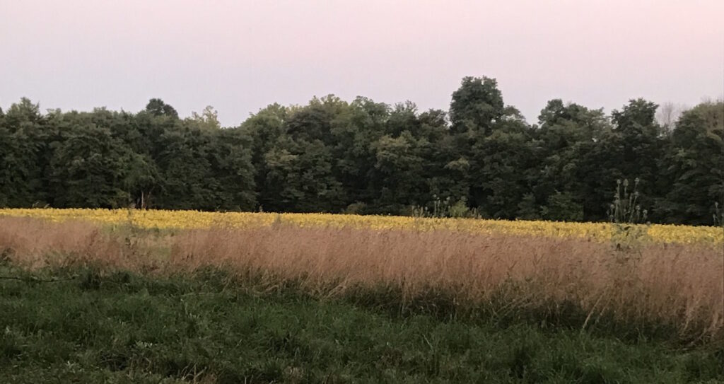The fields were so quiet and peaceful in the lingering light; only the the insects (cicadas and bees) were still busy. It was so beautiful, today’s New Place, both a time and a place.