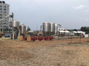 The only thing that’s new and slick here is the brewery equipment–silver towers rising sparkling in the air.  To make it just perfect—there’s Nationals Stadium in the background, the smell of an All Star game in the air.