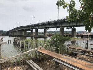 You really have to search this place out: No roofs, no buildings, no doors—just a ramshackle plank signpost announcing “Bardo” and a path leading down by some Job Johnny’s beside the bridge.