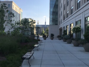 For almost two years, I have been driving by American University three times a week, on my way to the hospital and never been on the campus. Only this year, with my One New Place project, have I stopped and explored (See Jan 25 ONP and April 3 ONP). Today, I went across Nebraska Avenue to check out the “East Campus,” which I wasn’t even sure was part of the university before today. I thought those big modern buildings might be some other organization or business. Turns out it is AU, with a slick technology building and fitness center and large parking lot (gold in this city)