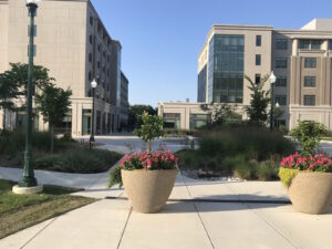 For almost two years, I have been driving by American University three times a week, on my way to the hospital and never been on the campus. Only this year, with my One New Place project, have I stopped and explored (See Jan 25 ONP and April 3 ONP). Today, I went across Nebraska Avenue to check out the “East Campus,” which I wasn’t even sure was part of the university before today. I thought those big modern buildings might be some other organization or business. Turns out it is AU, with a slick technology building and fitness center and large parking lot (gold in this city)