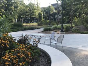 In the summer I have come to enjoy exploring in the dusk hours when it is less hot, and the light is slant, and the sky deepens its blue after the white-hotness of the day. In these hours, the university was quiet and semi-abandoned, only the hint of people remained—the chairs turned toward each other in conversation, the scattered tables, the bike racks empty and waiting to be filled. This was a nice breather and a somewhat meditative time at the end of a crazy day.