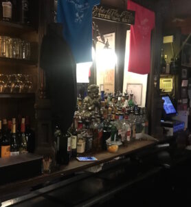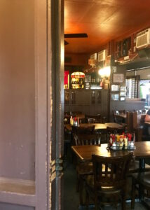 Mr. Henry’s has been in the neighborhood over 50 years, and is particularly a cornerstone of the DC jazz scene, perhaps most famously as providing a regular venue for Roberta Flack when she was an up and coming singer. As you may or may not be able to see (in the dark, underexposed picture below), a sign for her band “Roberta Flack Trio” still hangs above the mirror at the cash register/bar.