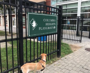 With low expectations but resolve (let’s just get this done!), I found my way to Girard Street, parked, and wandered over to the park. Immediately, Lola got lots of friendly attention from a passer-by, and the park’s official signage specifically named “Exploring” as an allowed activity. My mood started to pick itself up off the sidewalk.